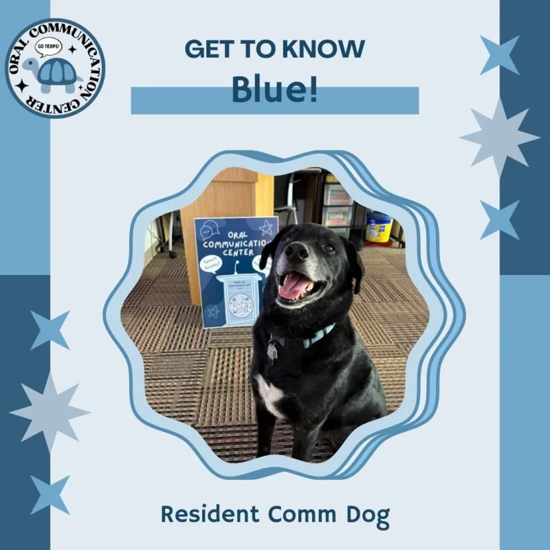 Blue is our resident comm dog, and you can usually find him roaming the second floor of the Skinner Building. He is a good boy who loves treats and pets! Stop by and say hello to him and his owner, Professor Julie Gowin on your way to the OCC! Make an appointment below for a chance to meet Blue 😉